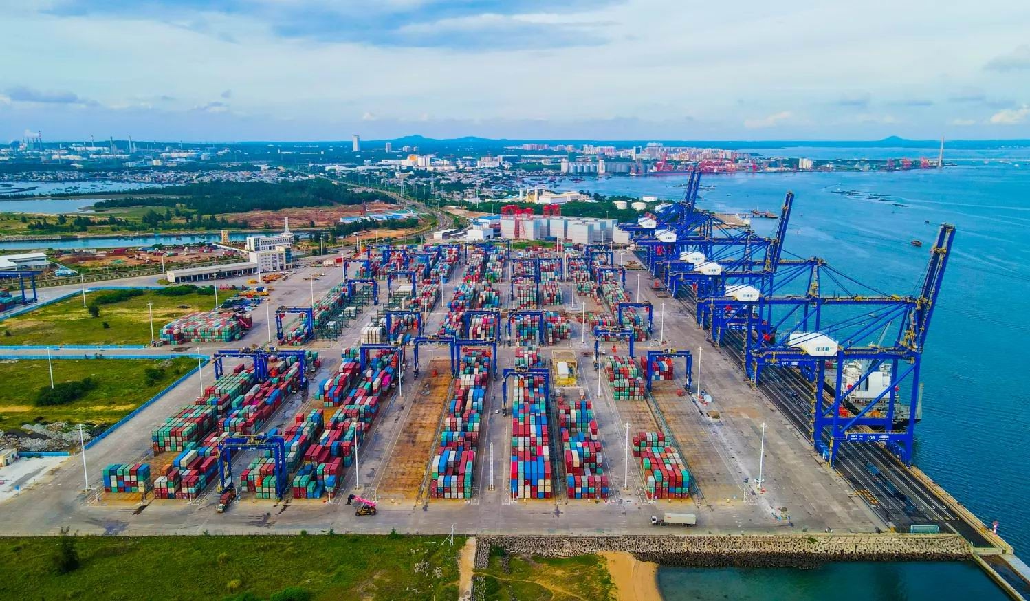 ? ? ? ? 洋浦國際集裝箱碼頭目前已完成了32臺場橋設備的智能化升級改造,場橋堆場覆蓋范圍內(nèi)自動化作業(yè)占比高達91%,工班最高單箱效率為2分38秒,大大提高了堆場的合理利用率。目前洋浦單日最高作業(yè)箱量為7170標箱,單月最高達12.55萬標箱,船時效率47.2自然箱/小時,同比增長22.06%。